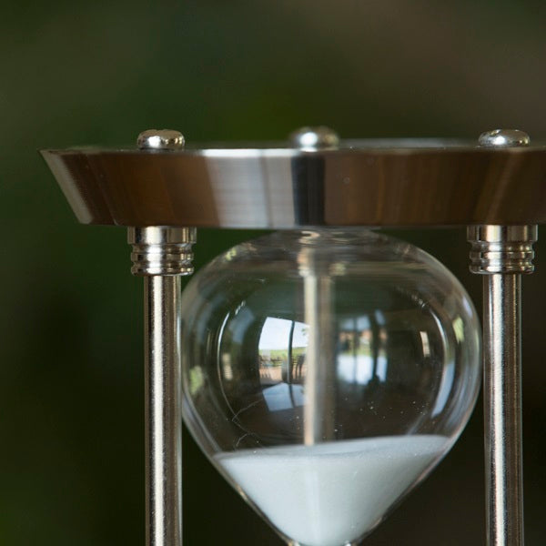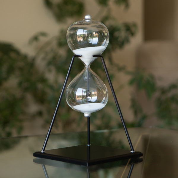 This custom Signature Collection hourglass is handcrafted from solid birdseye maple grown in the United States. Creamy white with a hint of reddish brown in color, the wood is figured with many small swirls resulting in circular "eyes" that are separate from each other. This hourlgass was selected by QVC for nationwide broadcast where 120 of these beautiful sand timers sold out in 4 minutes!