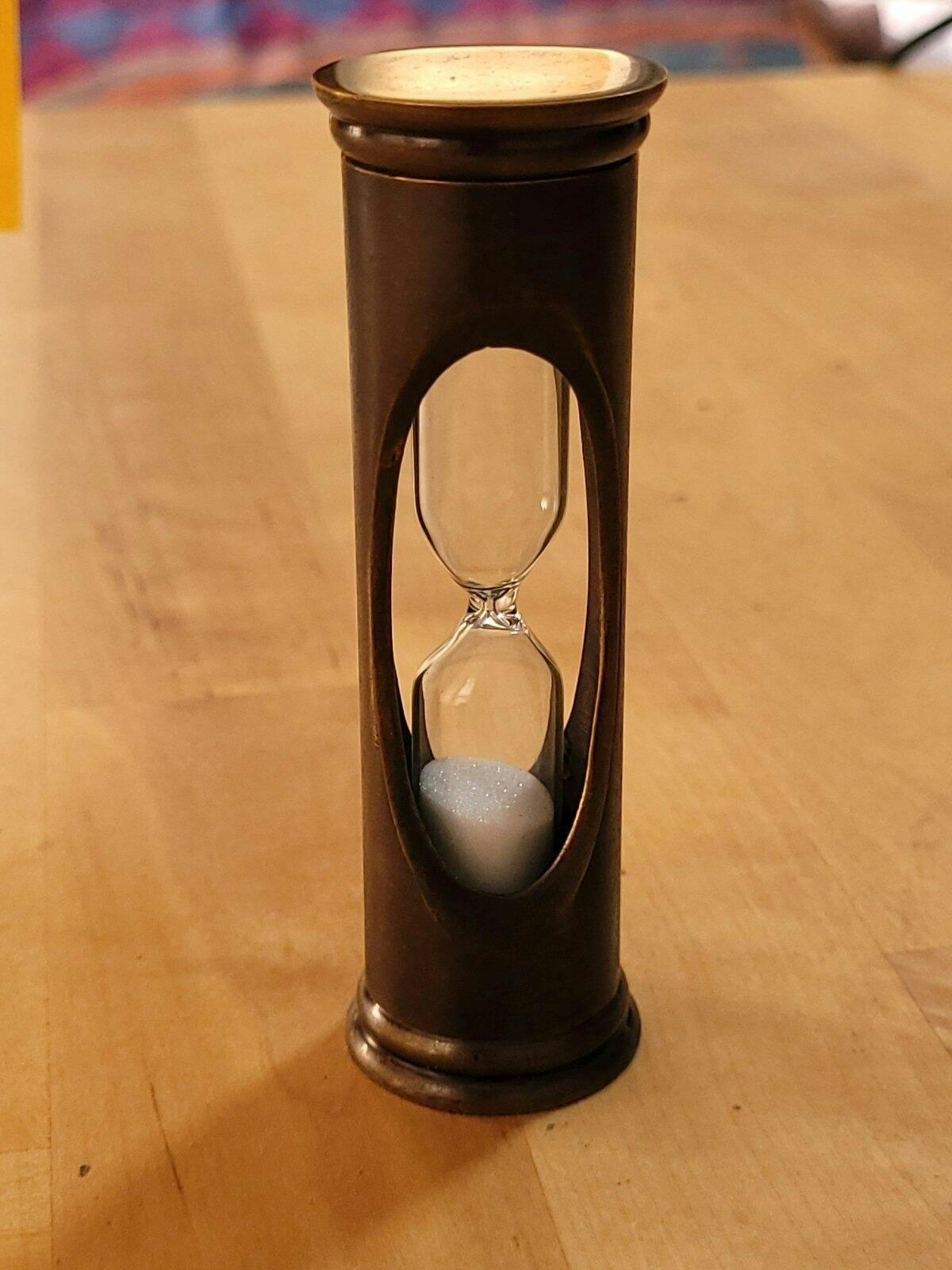 Small but mighty! This Authentic Model solid brass hourglass with a beautiful bronzed or brass finish has a great feel and solid construction. Great for timing conversations, steeping tea, playing games or just as another collectible.