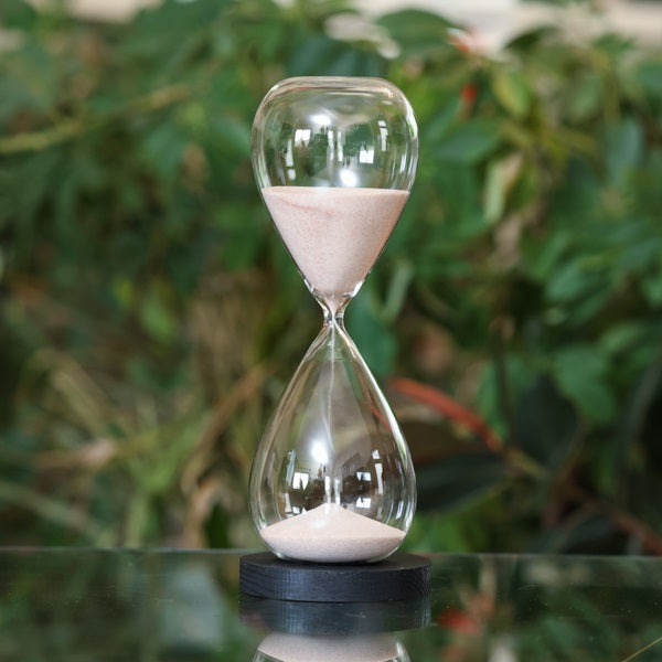 This hourglass with its natural sand is perfect for keeping track of important meetings or to watch the soothing sand pour through the globe. Hand blown in England it's also well made and sturdy! Contemporary style makes a great corporate or personal gift.