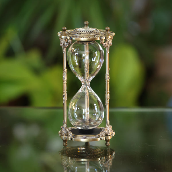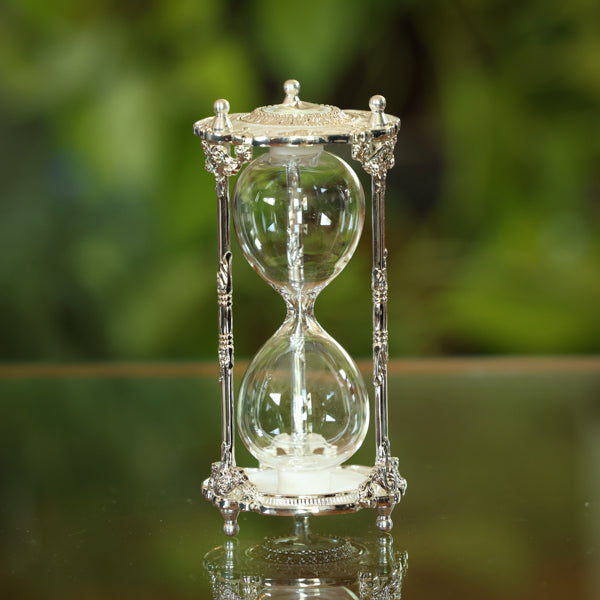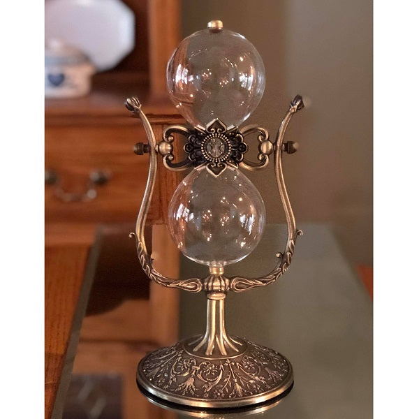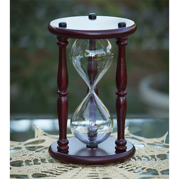 Hourglass urns are made differently than a regular hourglass, with a larger center hole to allow the ashes to flow through. They cannot be exactly timed, due to the consistency of the cremains, and sand will need to be added to help them flow. However, an hourglass is a beautiful symbol of the passage of time, and can become a family heirloom, passed down for generations. Â Â Engraving available - see examples of what's possible.