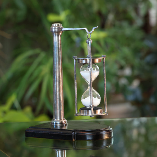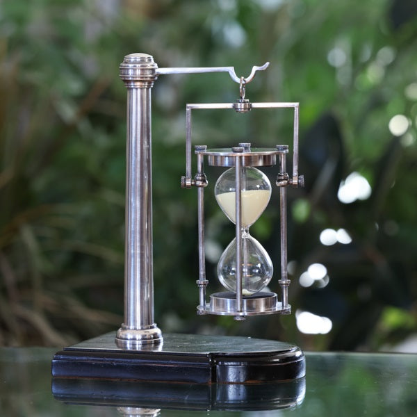 This 30 minute hourglass is a true collectors model that can be displayed as your desk accessory or table centerpiece in your home or office. Silver timer on sturdy, attractive rosewood stand, painted black for a nice contrast.