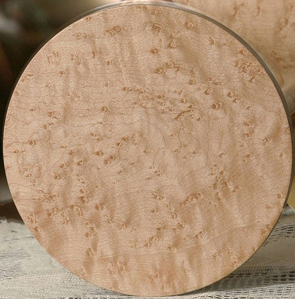 This custom Signature Collection hourglass is handcrafted from solid birdseye maple grown in the United States. Creamy white with a hint of reddish brown in color, the wood is figured with many small swirls resulting in circular "eyes" that are separate from each other. This hourglass was selected by QVC for nationwide broadcast where 120 of these beautiful sand timers sold out in 4 minutes!