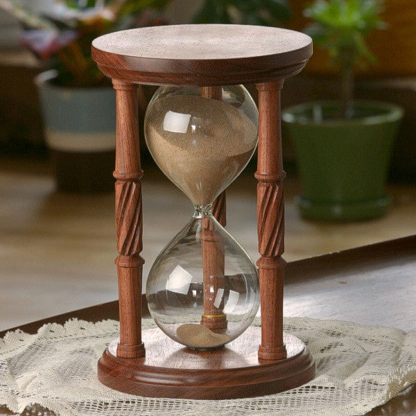 As with all wood each piece will vary slightly in graining and color making each hourglass unique. Hourglasses are handmade so sizes are approximate.