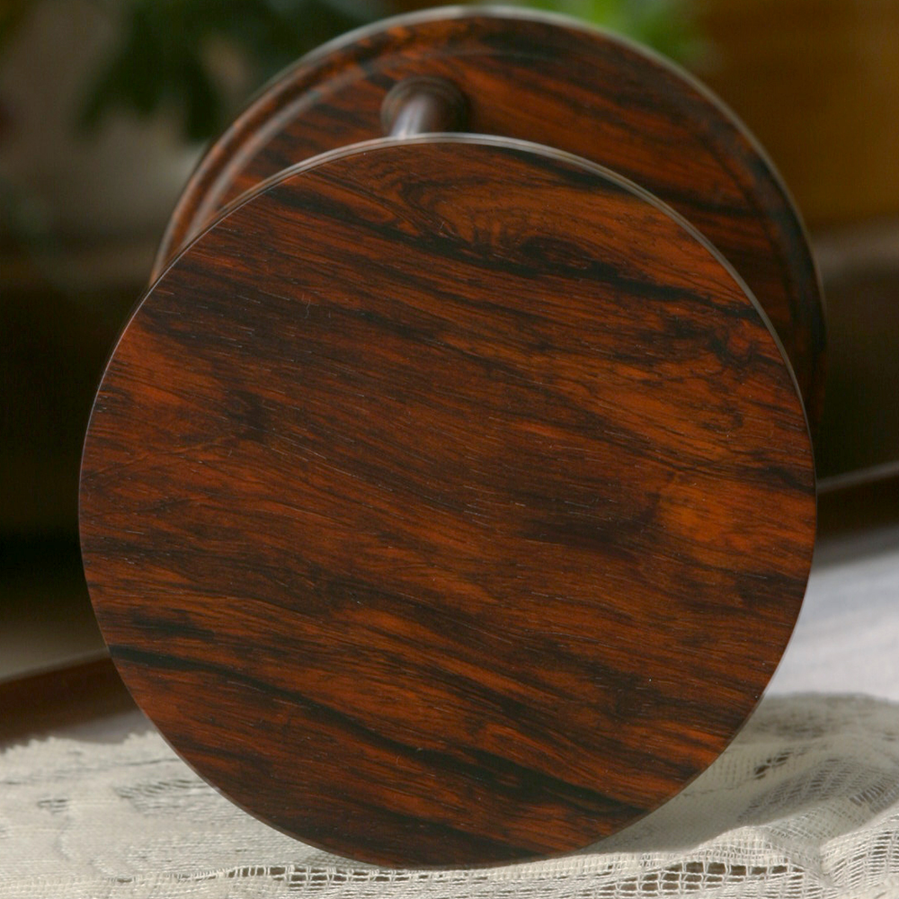 This custom Signature Collection hourglass is handcrafted from solid cocobolo wood grown in Central America. A beautiful wood, it's denseness makes it very strong and durable and it finishes very smoothly. The color is a variegated yellow-orange, dark red with irregular black stripes. Like all wood cocobolo varies in graining and color - with some hourglasses the black stripes are more prominent, in others the yellow-orange color is more prominent. No two are alike. Combined with glass bulbs hand-blown in England, this classic piece is stunning.