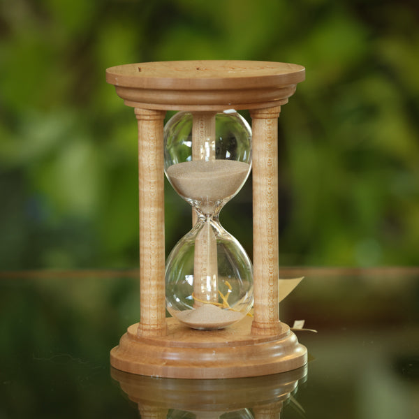 As with all wood each piece will vary slightly in graining and color making each hourglass unique. Hourglasses are handmade so sizes are approximate.