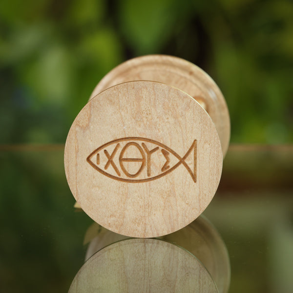 Like all of our Signature Collection hourglasses this custom hourglass is handcrafted from solid wood made here in the US. The Ichthys symbol lasered on one end symbolizes Jesus Christ. The symbol also connects to biblical events, such as Jesus feeding the 5,000 with five loaves and two fish, his disciples being "fishers of men," and the tradition of water baptism, which is like being "born in the water" like a fish. Available in two sizes and 4 different wood choices and makes a beautiful option for holding your loved one's cremains.