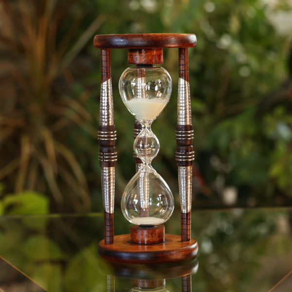 Made from recycled industrial artifacts from the the early 1900s, this three tier hourglass has a history as unique as it's style!
